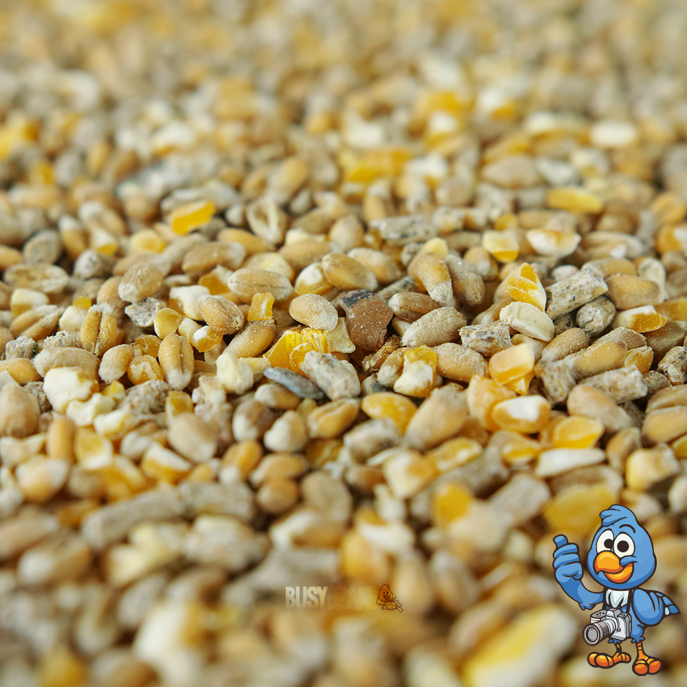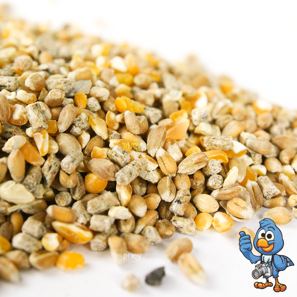 PREMIUM QUALITY - BusyBeaks Chicken Corn Extra is made from an enhanced mixture of high fibre wheat, energy filled split maize, nutritious oyster shell grit and tasty layers pellets.